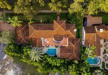Precision arial imagery, highlighting elegant architectural details and modern yet timeless exteriors. Use of warm tones, soft textures, and strategic lighting to enhance the depth and ambiance.